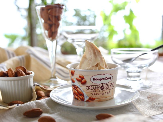 『アーモンド&ミルク』は、ジェラートの定番であるナッツフレーバーをハーゲンダッツ流にアレンジ。香ばしくすっきりとした後味のアーモンドジェラートを、豊かな風味とコク深いミルクジェラートが引き立てる仕上がり。