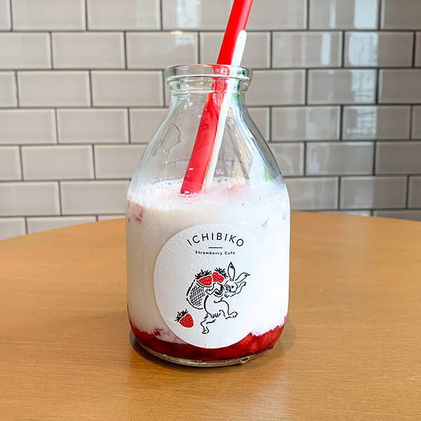 お店では農場直送のいちごを使った魅力的なメニューが数々展開されていますが、こちらの「いちびこミルク」は発売以来10万本を販売しているといういちびこ人気No.1ドリンクです。