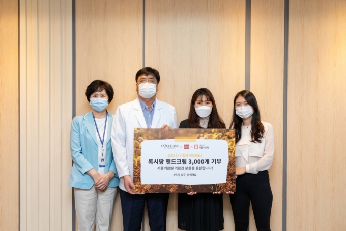 | 롯데면세점과 록시땅이 코로나19 최전선에서 헌신하는 서울의료원 의료진들에게 핸드크림 3000개를 기부했다. /사진=롯데면세점 |