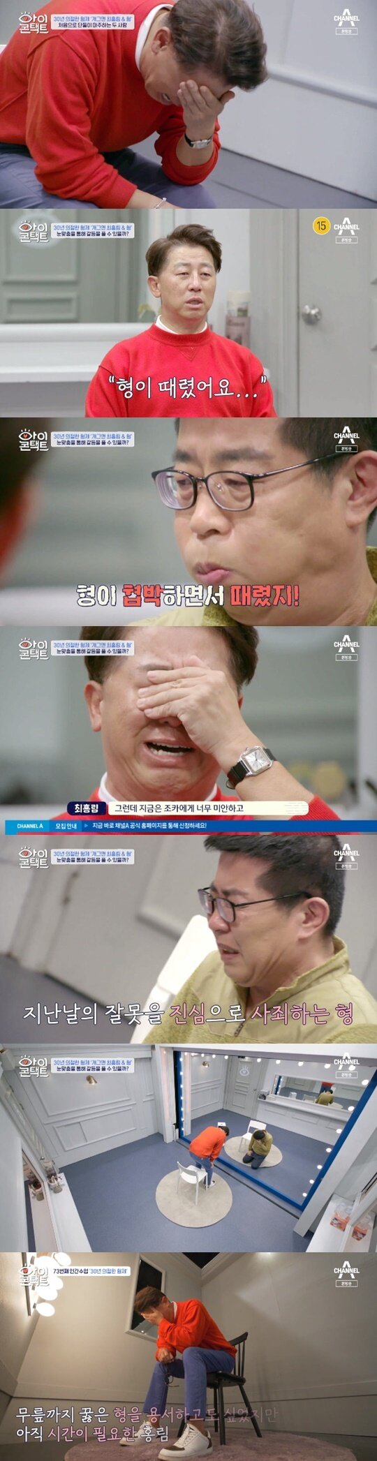 지난 6일 오후 방송된 채널A '아이콘택트'에서는 최홍림이 출현해 큰형과 30년만에 눈맞춤을 하는 모습이 그려졌다. 이날 최홍림은 어린 시절부터 폭력적인 성향을 보이며 자신에게 트라우마를 안긴 큰형과 30년 만에 만나 그간의 힘들었던 이야기를 털어놓으며 눈물을 흘려 많은 이들을 안타깝게 했다.