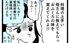夫の塩太によると義母は優しくて料理上手。料理が苦手な栄美には、義母からおふくろの味を教わってほしいと言います。管理栄養士の資格を持っている栄美は料理下手だと思われていたことにショックを受けますが、前向きに受け止めることに。